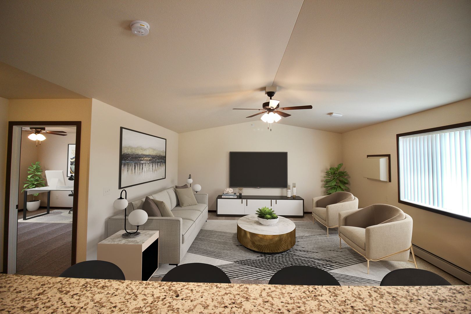 • Heat, water, sewer, trash removal, snow removal, lawn care, cable TV and high-speed internet package included in rent.